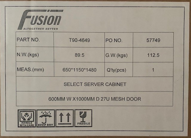 Fusion Contract Server Cab 600mm W x 1000mm D 27U Mesh Door